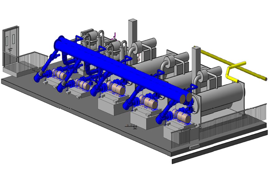 傳統(tǒng)的空調(diào)主機房施工需要1~2個月,而且機房內(nèi)施工人員密集,危險源較多。BIM技術(shù)與裝配式技術(shù)相結(jié)合,能實現(xiàn)將空調(diào)機房內(nèi)的設備及管路模塊化制造生產(chǎn),將傳統(tǒng)的1~2個月現(xiàn)場施工周期,縮短7~15天。同時降低現(xiàn)場施工危險源,提高施工效率。